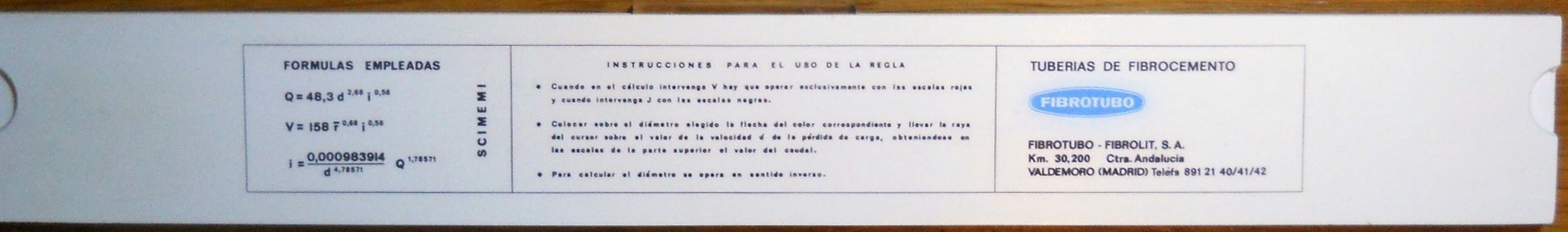| Esta segunda versión pierde el texto “publicitario” en rojo (parte pasa a negro) y en el reveso se simplifica la zona de propaganda (solo un logo). Podría ser que la regla con las escalas se fabricara en una serie en 1967 de la que un remanente se completara diez años después (con las marcas comerciales…). También hay un modelo equivalente de Indal (mucho más sencillo) presuntamente anterior. | |