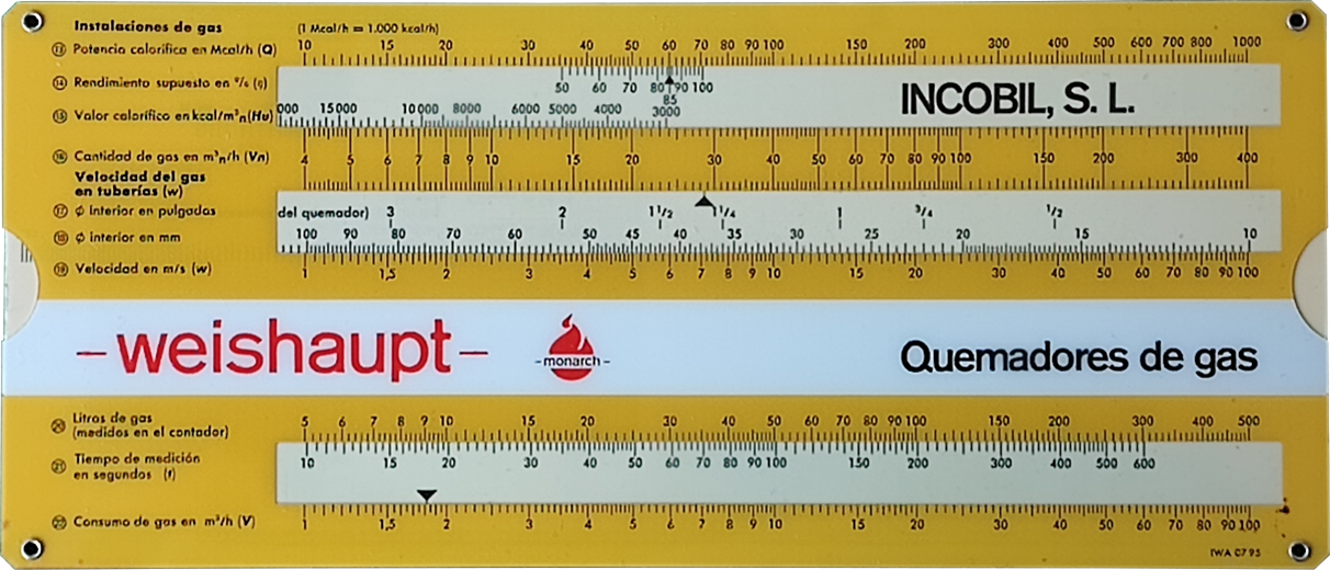 | Escalas: | Específicas para el cálculo de quemadores de gasoil o gas |